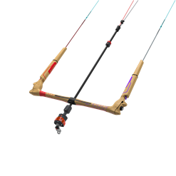 Safety remains paramount with the inclusion of the Iron Heart VI Click-In safety system and an automatic untwisting mechanism that simplifies the experience after rotations or loops. A removable floater allows for easy inspections of the leader lines, ensuring they remain in good condition, while minimalistic pigtails are only sleeved in necessary areas, reducing clutter. The design also features a metal ring as a V-Distributor, making disassembly and reassembly easy while preventing tangled lines. Riders will appreciate the flexibility of using either a 4 or 5 lines setup, with the 5th line upgrade kit available for those seeking additional customization e.g. on C-kites. The suicide ring option provides advanced riders with a fixed suicide mode.